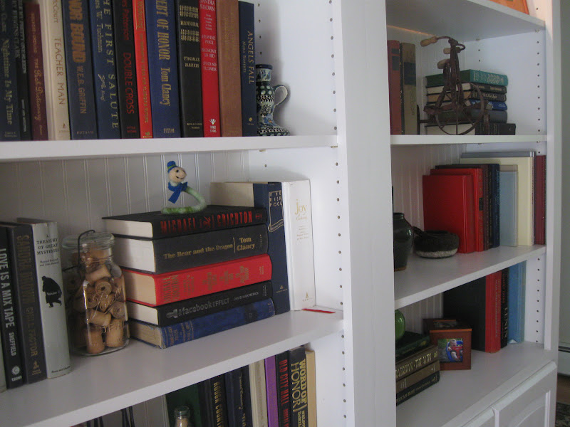 Let me step back a minute, though, to early April, when we ordered our first set of bookcases. We decided to go to the local unfinished furniture store to order something custom so we could get them just how we wanted, and we figured we'd paint them since we wanted them to be white anyway. We put in our order, and with a 6-8 week delivery promise, hoped we'd at least have them by the time we went to Florida at the end of May. Well, the Florida trip came and went, and we called. Well, they've been running behind. And we called again. They're on the truck but we can't find them. We called again. They're in a town nearby but they just haven't made it here. We demanded our deposit back. And thankfully we did, as they are out of business as of a few weeks ago. Tell me about it.
